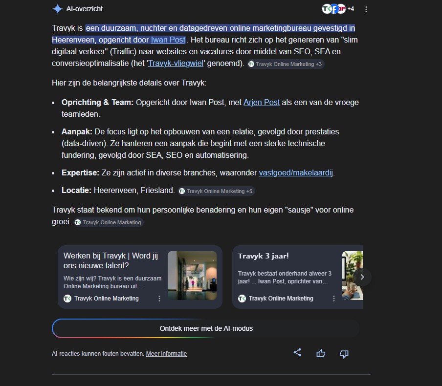 Maar vertrouwen zit ook in subtielere signalen: transparantie over auteurschap, consistente publicatiekwaliteit en een natuurlijk linkprofiel zonder extreme patronen. Dit sluit direct aan bij E-E-A-T (Experience, Expertise, Authoritativeness, Trust). In een tijd waarin AI-systemen informatie synthetiseren en bronnen wegen op betrouwbaarheid, worden deze signalen alleen maar belangrijker.